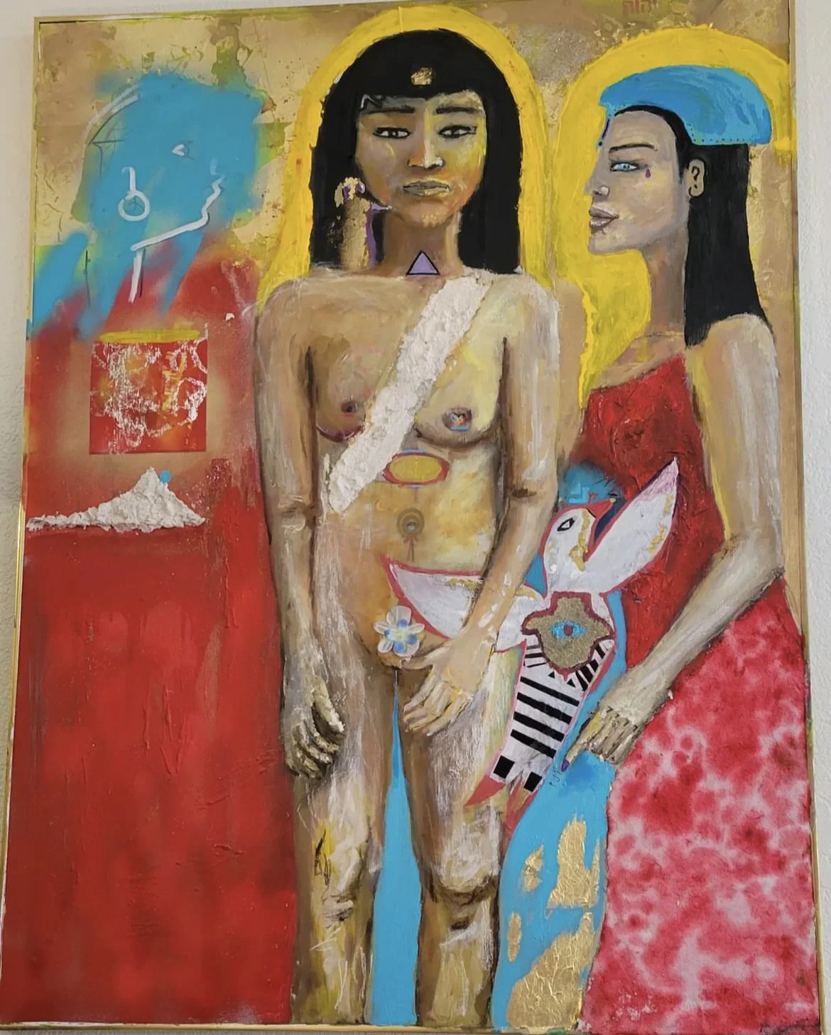 On The Wings Of The Sacred Ibis, Oct 2025, commemorating lives lost to overdose. This show features a series of paintings by Meera on the afterlife and work by more than 7 talented American artists who experienced loss due to drug overdoses. Exhibition held in the historical building of Portland Oregon, the Melvin Mark. Musical featured by the Yugen Music Project.